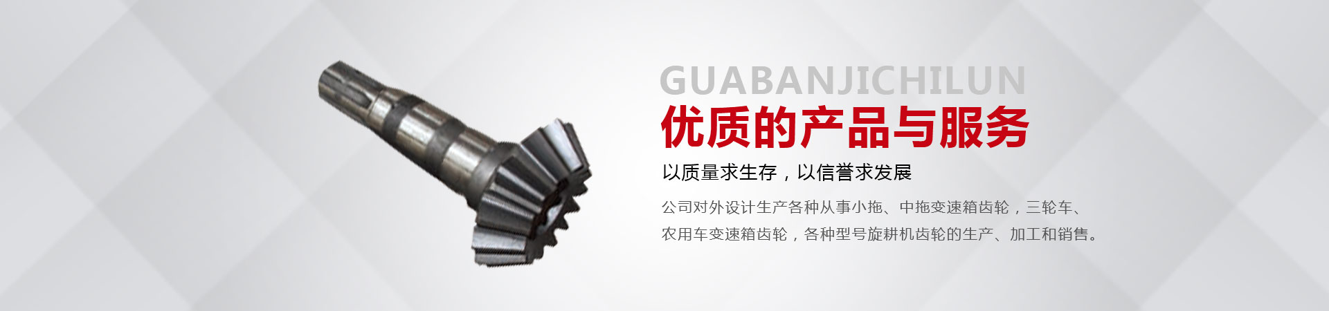 本廠位于省會(huì)東南60公里的全國重點(diǎn)鎮(zhèn)——大陸村鎮(zhèn)。本廠在市場內(nèi)設(shè)有銷售公司,經(jīng)銷工程機(jī)械;農(nóng)用拖拉機(jī);農(nóng)機(jī)具的整機(jī)和全車配件。市場緊靠308國道,距青銀高速寧晉路口14公里,交通十分方便。主要從事小拖、中拖變速箱齒輪,三輪車、農(nóng)用車變速箱齒輪,各種型號(hào)旋耕機(jī)齒輪、收獲機(jī)械變速箱齒輪的生產(chǎn)、加工和銷售。同時(shí)加工定做各種直齒輪,傘齒輪,斜齒輪,鏈輪,齒輪軸等機(jī)械產(chǎn)品。廠內(nèi)檢測手段齊全。十幾年來與河北、北京、山東、安徽、河南、吉林、陜西、山西、寧夏、黑龍江、遼寧等省市的企業(yè)建立了穩(wěn)固的業(yè)務(wù)關(guān)系。產(chǎn)品質(zhì)量穩(wěn)定、價(jià)格合理、供貨及時(shí)。